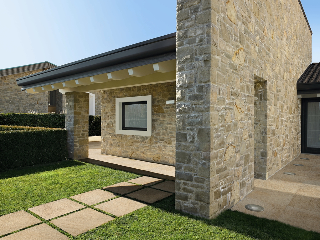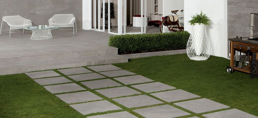 Die Terrassenplatten können auf einem Splittbett, mit Stelzlagern oder auf Mörtelbatzen verlegt werden. Die Terrassenplatten lassen sich gegenüber Betonplatten leicht reinigen .